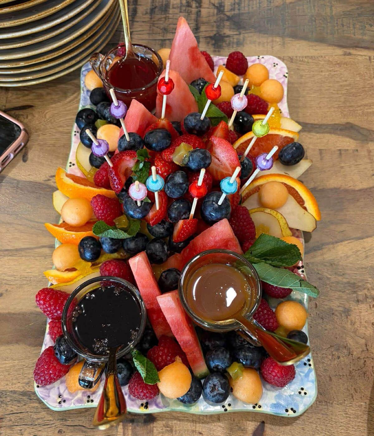Leslie, the manager at Transform Together, cleared the front area so we could set up a play mat and toys for the babies. This allowed the moms to be hands-free and actually enjoy some time together. Meanwhile, Morgan and her team at Creative Stir Café made things even easier by bringing our food and drinks over once we ordered, so we didn’t have to juggle babies and trays. They even surprised us with a beautiful fruit tray!